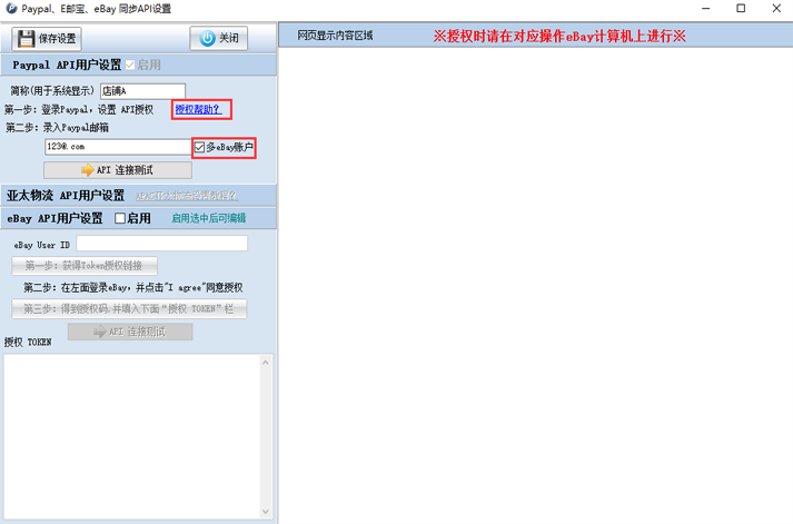 按钮,并确认“Ebay API用户设置” 后面的“启用复选框”被勾选,然后按提示步骤进行操作即可。如下图:
