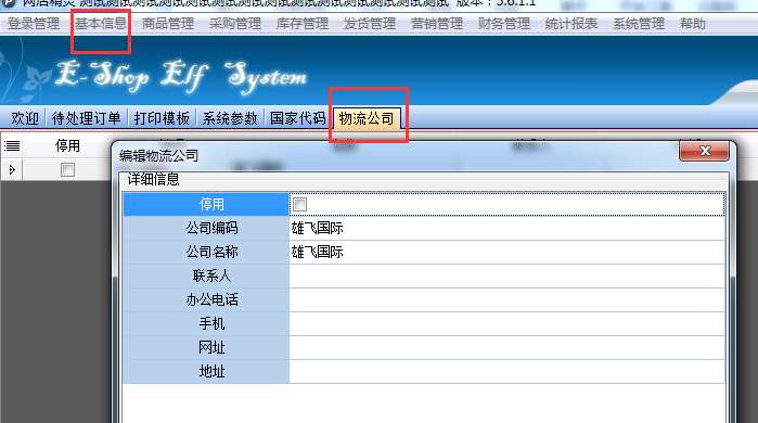打开基本信息下的物流公司,在公司名称中填写具体的物流公司名称,如下图所示