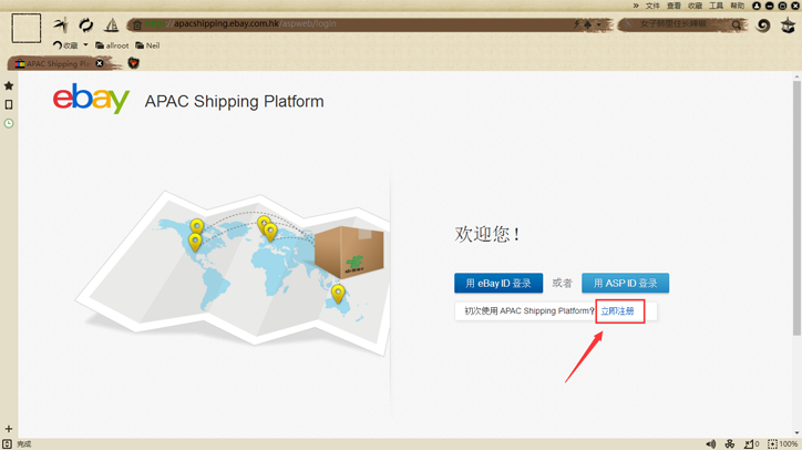 1、访问APAC平台,已有账户直接登录,没有账户使用您的eBay账号注册