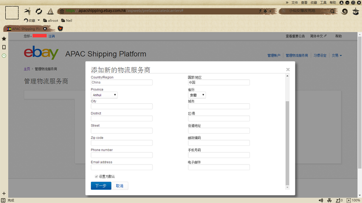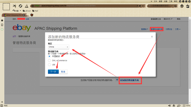 进入APAC Shipping Platform账户管理页面,您可以添加您的其他eBay卖家ID。